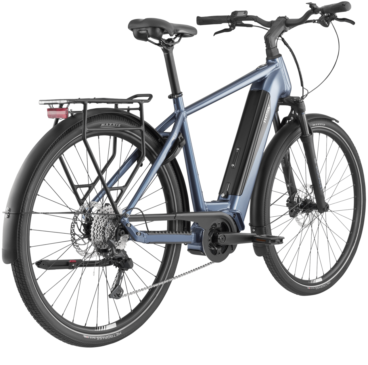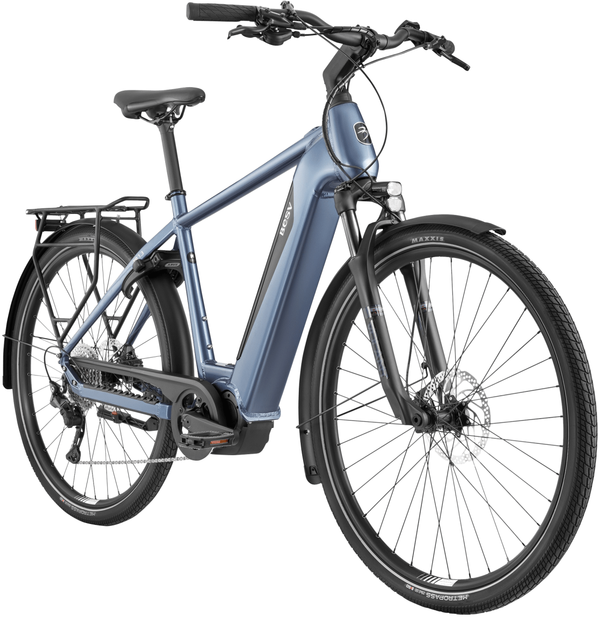 Das BESV TR 1.3 entstand aus dem Wunsch ein komfortables E-Bike sowohl für Langstrecken als auch fürs tägliche Pendeln zu entwickeln. Mit einer Akkukapazität von 630 Wattstunden in Kombination mit dem effizienten und leisen Shimano E6100 Mittelmotor (60 Nm Drehmoment) kommst du einfach überall hin. Das E-Bike verfügt über einen griffgünstig am Oberrohr platzierten USB-Ladeport, mit dem du zum Beispiel dein Smartphone unterwegs laden kannst. Sehr praktisch, wenn du es zum Navigieren auf deinen Touren verwendest. Und der robuste Racktime Gepäckträger mit Snapit-System befördert nicht nur die Office-Tasche im Alltag, sondern hat auch genügend Reserven für das große Reisegepäck im Urlaub und am Wochenende.